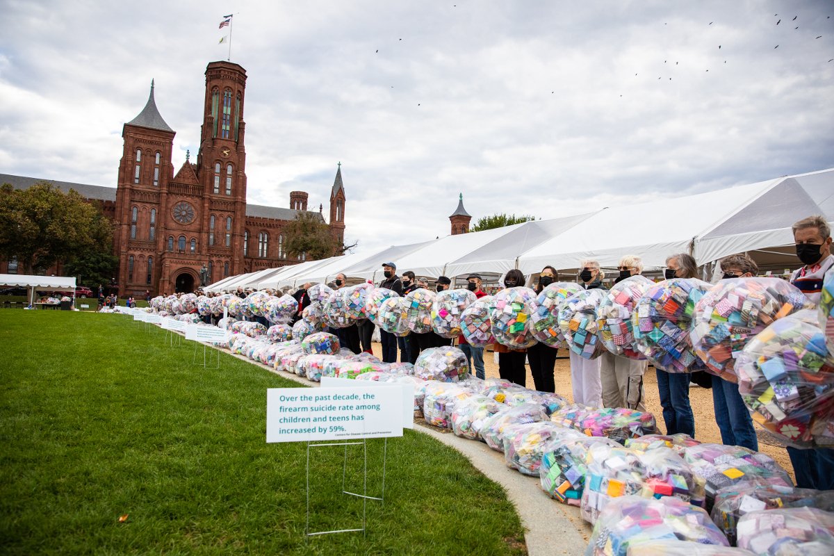 Caption & Photo Credit: Volunteers prepare for closing procession of the exhibit, This Loss We Carry, in front of the Smithsonian Castle, Washington, D.C., October 2021 Photo credit: Lancer Photography